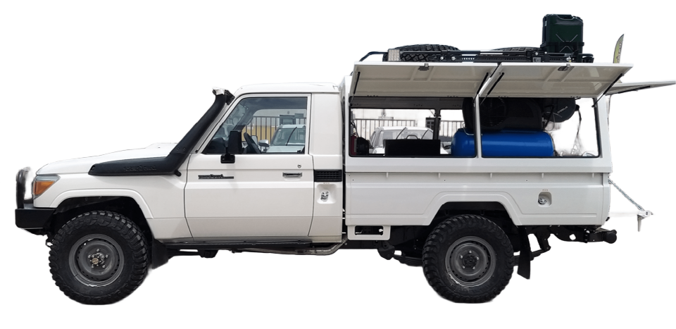 我們亦將豐田Coaster及豐田Hiace等車型改裝為適用於崎嶇地形的四輪驅動巴士,並開發獨立運作的移動式維修站,以進行現場作業與維護。